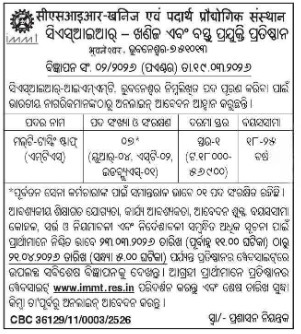 CSIR IMMT Bhubaneswar Recruitment 2026: The CSIR-Institute of Minerals and Materials Technology (IMMT), Bhubaneswar has released an official recruitment notification (Advt. No. 01/2026) for the position of Multi-Tasking Staff (MTS). Applications are invited from eligible Indian citizens to fill these vacancies in a premier research institute.