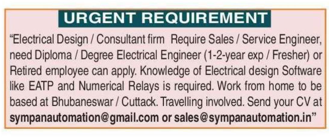 Urgent Job Alert: Electrical Sales/Service Engineer – Work From Home!