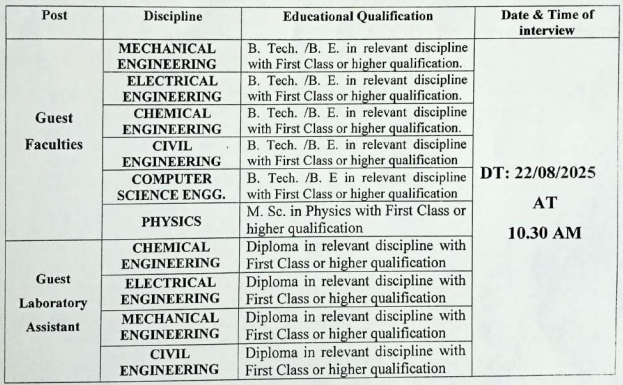 Name of the post | Guest Faculty in Mechanical & Metallurgical Engineering |