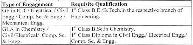 Engagement of Guest Faculty (GF)/Guest Lab Asst.(GLA) for 2025-26 Interested candidates having requisite qualification as mentioned below may attend the Walk-In-Interview on 20/08/2025 with all original documents along with Xerox copies, bio-data and two passport size photographs for engagement as Guest Faculty(GF)/ Guest Lab Asst. (GLA) in this institution during the 2025-26 academic Session. Remuneration will be paid as per Govt. approved norms. This engagement is purely need-based, part time and temporary in nature. Engagement will be as per approval by Govt. / DTE&T, Odisha.