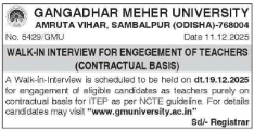 GANGADHAR MEHER UNIVERSITY AMRUTA VIHAR, SAMBALPUR (ODISHA)-768004 WILL CONDUCT WALK-IN INTERVIEW FOR ENGEGEMENT OF TEACHERS (CONTRACTUAL BASIS)
