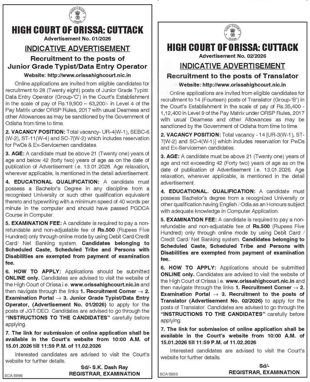 Odisha High Court Recruitment 2026: If you are looking for a stable and prestigious Odisha govt job, the High Court of Orissa, Cuttack, has just announced two major recruitment drives. These positions offer a great chance to secure an Odisha govt job in the judicial sector with competitive pay scales.