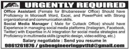 👩💼 Office Assistant (Female – Bhubaneswar Office)