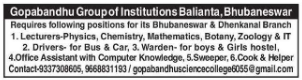 Recruitment at Gopabandhu Group of Institutions, Balianta
