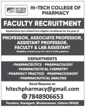 Teaching Jobs in Bhubaneswar Odisha: Recruitment at HI-TECH COLLEGE OF PHARMACY Bhubaneswar
