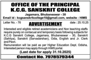 Details for Recruitment at K.C.G. Sanskrit College in Jagamara, Bhubaneswar